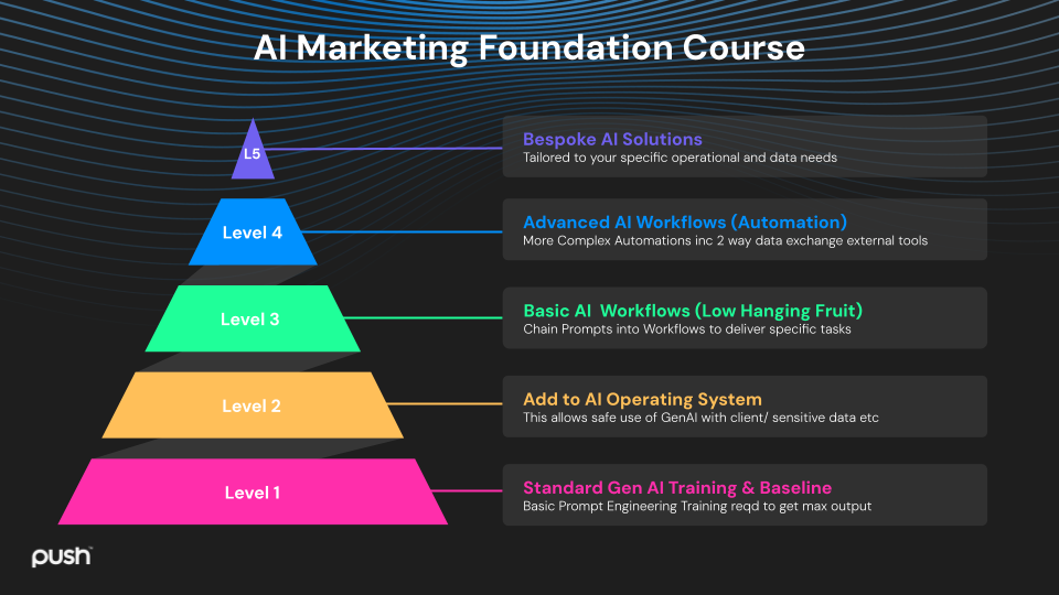 Accelerated and targeted AI training for your entire marketing team BUT most importantlywe will introduce you to an AI Marketing Operating System to bring all these AI services and secure your data in a single, simple platform.
