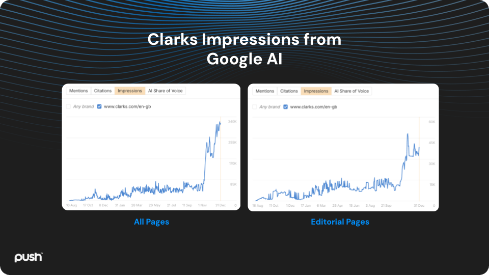 This campaign demonstrated how AI can transform SEO delivery when time and resources are constrained. By leveraging proprietary AI tools for keyword research, content creation, and quality assurance, Push delivered exceptional organic growth during Clarks' most critical commercial period.