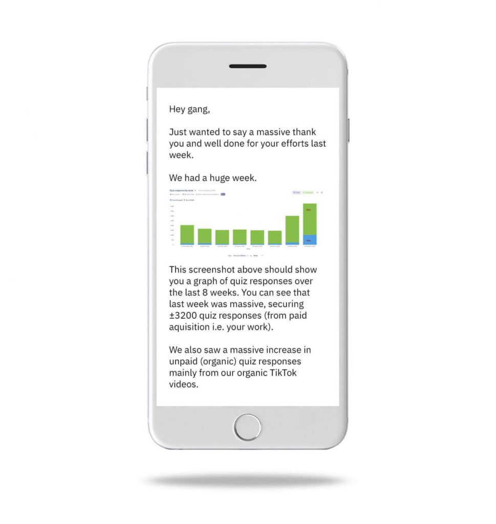 After introducing TikTok to their existing advertising strategy, we increased overall lead volume by 76% month on month, while decreasing their overall cost per lead by 41%.